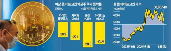 암호화폐 채굴주를 저가 매수할 시기가 됐다는 분석이 미국 월가에서 잇따라 나오고 있다. 최근 비트코인 등 주요 가상자산 가격이 하락했지만 4년마다 비트코인 채굴량이 반토막 나는 반감기가 끝난 데다 미국 대선이 가까워질수록 비트코인이 다시 주목받을 것이란 전망에서다.